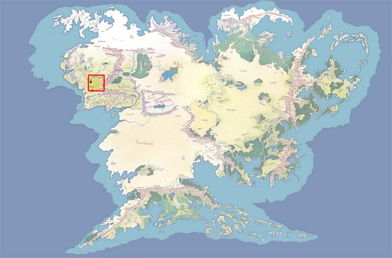 Las Tierras Brunas. Sobre todo Larach Duhnnan, su capital, el Bosque de Caerdh y el pueblo hobbit de Nueva Marjala.