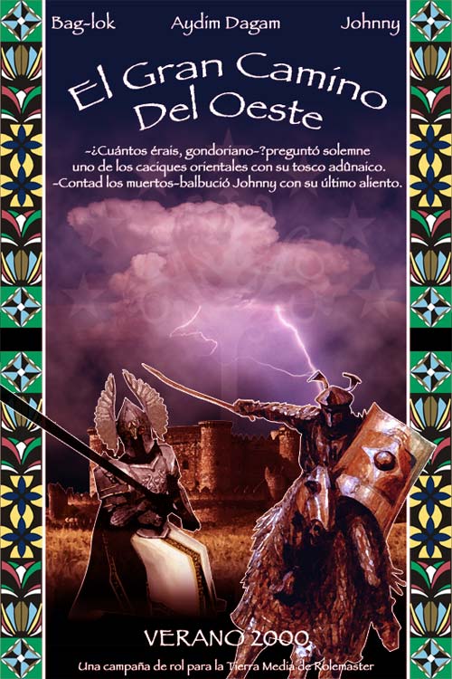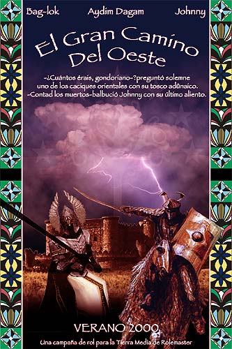 El gran camino del Oeste es un guión de rol jugable como partida de rol y ambientado en la Tierra Media de Rolemaster. En realidad, todos los guiones de rol de este sitio son jugables como partidas de rol y están ambientados en la Tierra Media -Tolkien- con las modificaciones de ésta que puede implicar el uso de un sistema como el Señor de los anillos -MERP- y Rolemaster. By Aydim Dagam.