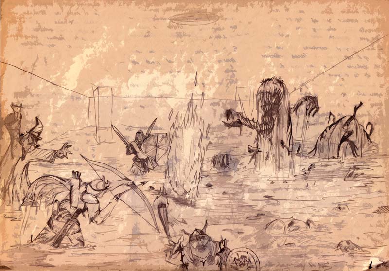 Un ominoso y coriáceo organismo flagelado, apéndices retorcidos a modo de tentáculos jalonan su amorfo cuerpo, muchos de ellos con función depredadora a base de varias hileras de dientes. Una mefítica y ciega criatura anfibia de descomunal tamaño, cual kraken ofidio que se alimenta de la putredad de los desperdicios, los cadáveres en putrefacción y el agua emponzoñada. Mora en el foso de la Fortaleza de El Coleccionista. Un foso trampa para todos los incautos que entren.