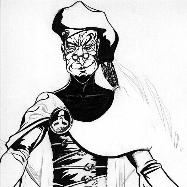 Es el pintor y uno de los nueve demonios ninja sirvientes del sogún de las tinieblas que ha traicionado al Gran Choyin. Puede cambiarse por cualquiera de las figuras que pinta, apareciendo donde esté el cuadro. Domina el RETSU del Kuji Kiri. Su nombre es Teokoto, que en el idioma vernáculo significa 'orgulloso y arrogante'. Es el líder del grupo destinado a Calenardhon.
